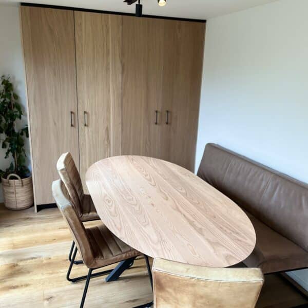 Een eettafel op maat vormt het middelpunt van je huis. Het is de plek waar je samenkomt om te eten, te werken of bij te praten met vrienden en familie. Bij Handig in hout kies je zelf het formaat, het type onderstel (bijvoorbeeld een kruispoot of U-poot) en de afwerking. Zo krijg je een tafel die aansluit bij jouw interieur en gebruik.